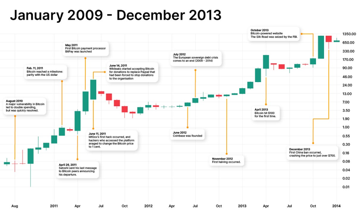En los siguientes meses comprendí la verdadera volatilidad de este naciente activo, pronto se fue a más de $1,300 dólares, para luego caer súbitamente a cerca de $300 dólares después del colapso de Mt Gox, uno de los más grandes capítulos de la corta historia de Bitcoin.